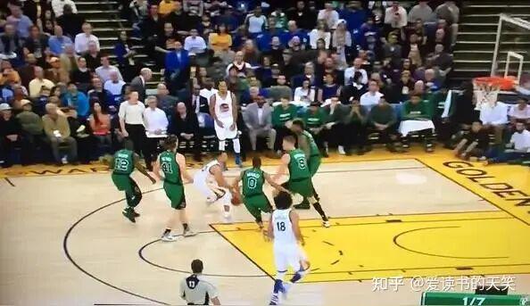 库里的无球能力出色,经常无球跑动后甩开对手,接球就投。而库里和勇士大个子球员的挡拆战术也运用的炉火纯青。大个子将追防库里的防守球员一堵,库里瞬间就可以出手投篮。